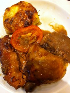 Walking into this place with beautiful mosaics of small villages of France on the walls made it all a more cozy place to sit and enjoy some wine. It was a lovely setting and i knew exactly what i wanted to eat. I asked for a combination of the meats that were on the roaster outside. Chicken, Pork, and Lamb. The prices were significantly cheaper than the last two places i’ve been but that didn’t lower my expectations.
